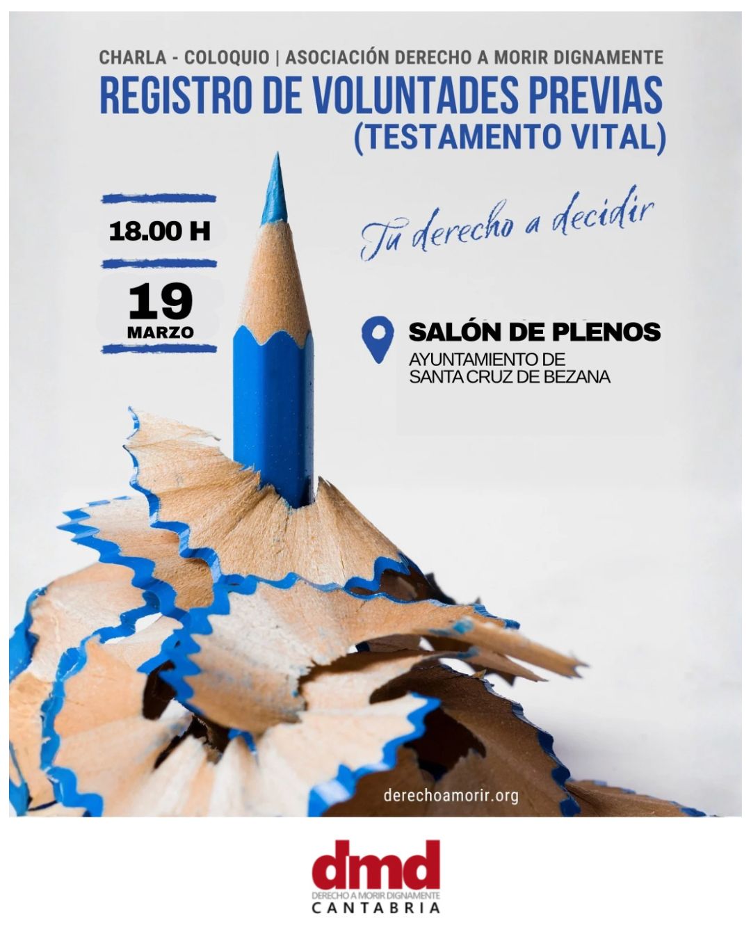 2026-03-19 18:00 Salón de Plenos del Ayuntamiento Charla testamento vital Charla-coloquio para explicar por qué es importante registrar el testamento vital, para qué sirve y cómo puede ayudarte a dejar por escrito tus decisiones.