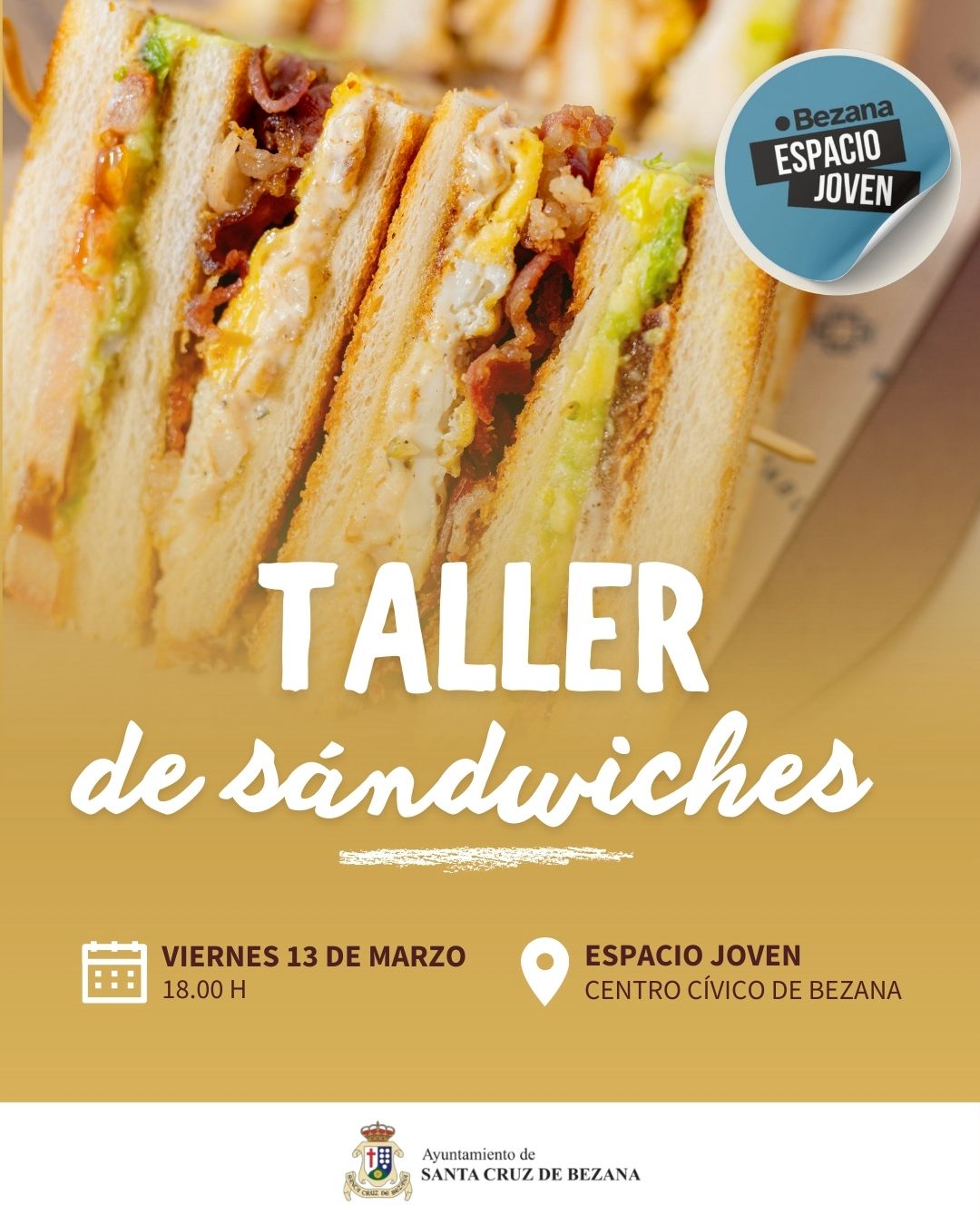 2026-03-13 18:00 Centro Cívico Santa Cruz de Bezana, Plaza Margarita Taller de Sándwiches El Espacio Joven Bezana del Centro Cívico será un lugar donde preparar y compartir sándwiches la tarde del viernes.
